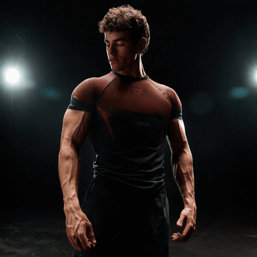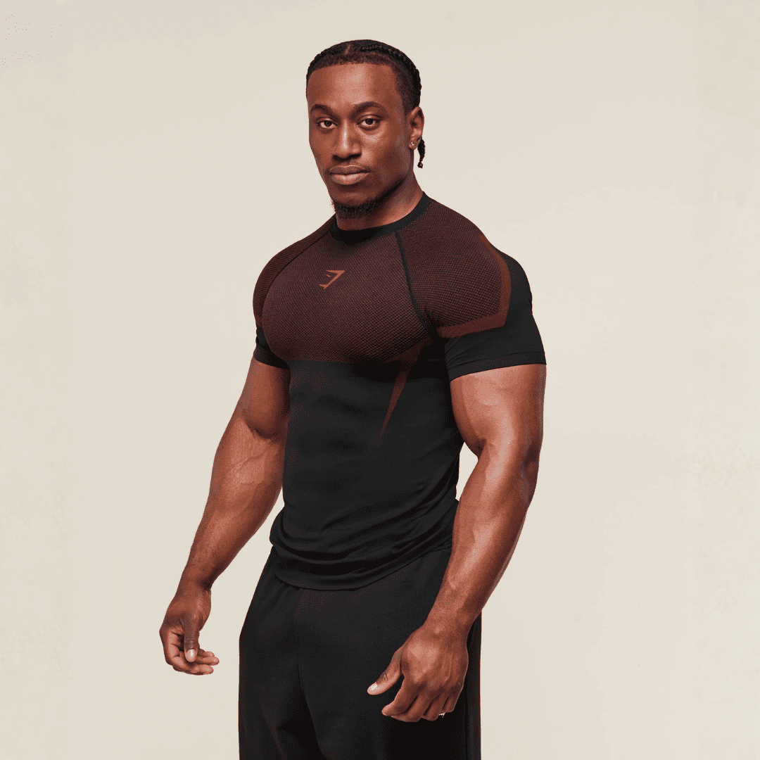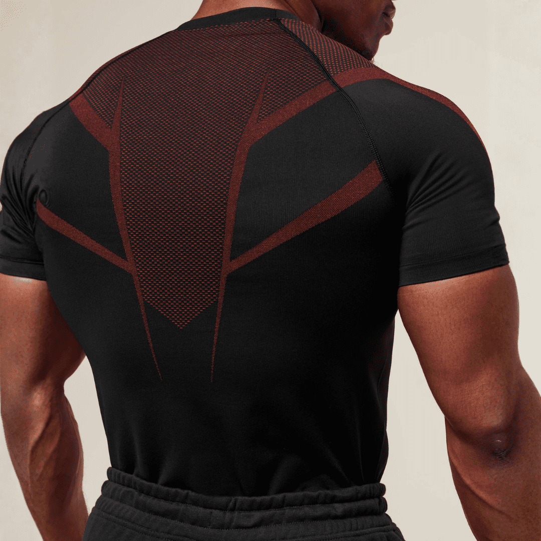 GYMSHARK ONYX 5.0 SEAMLESS T-SHIRT – BLACK/CARMINE RED
