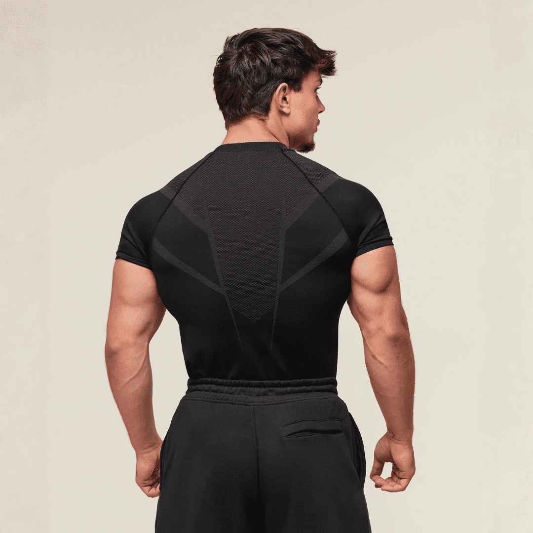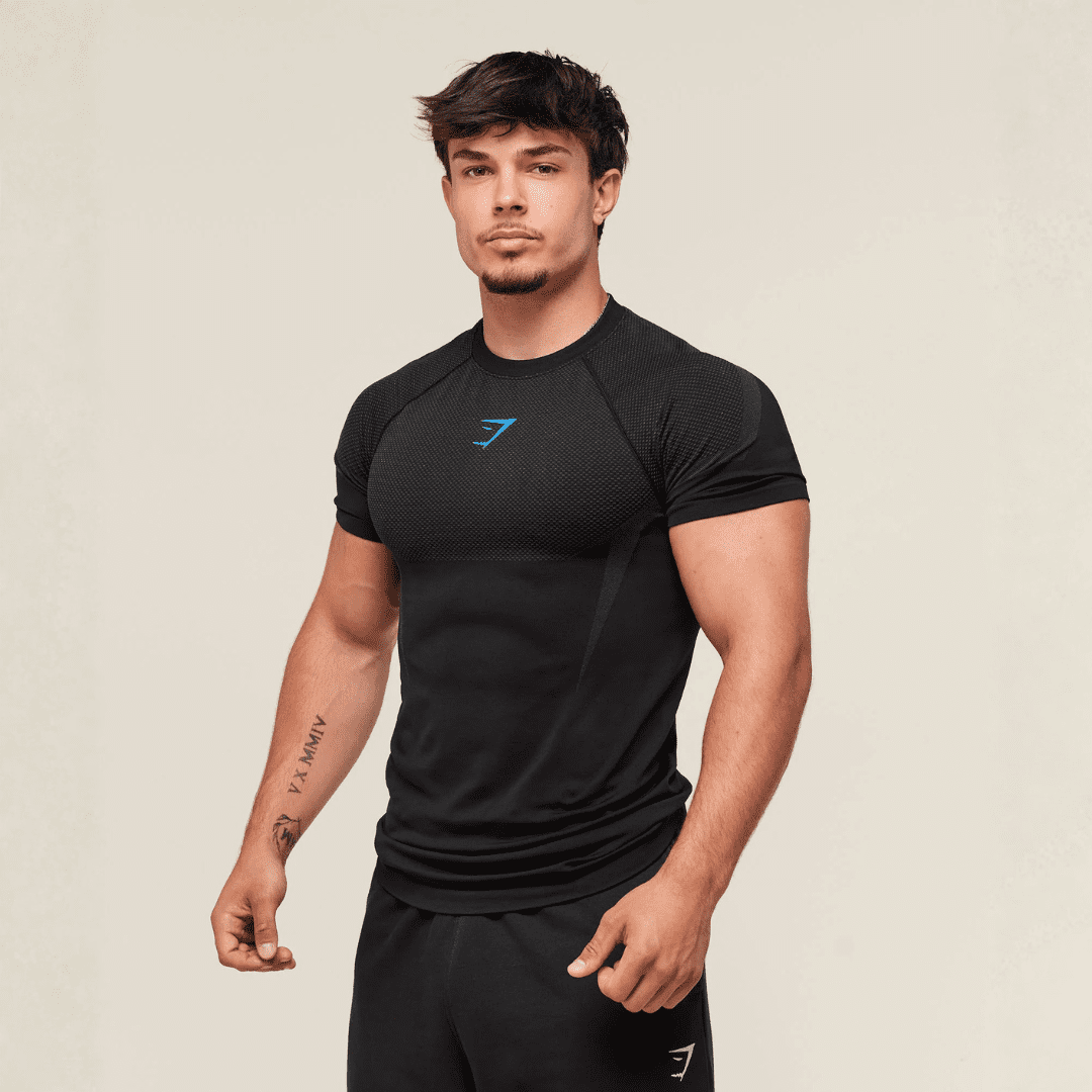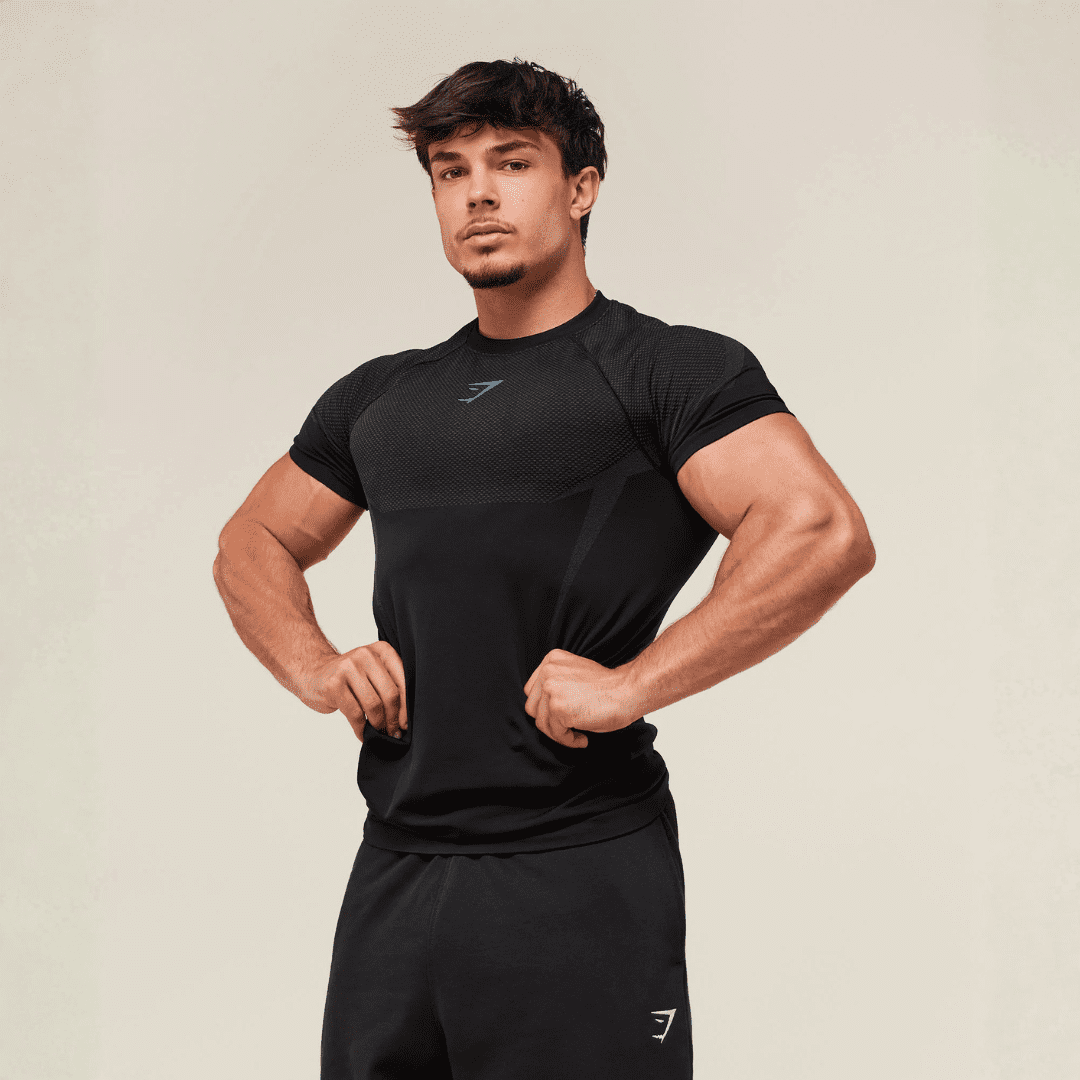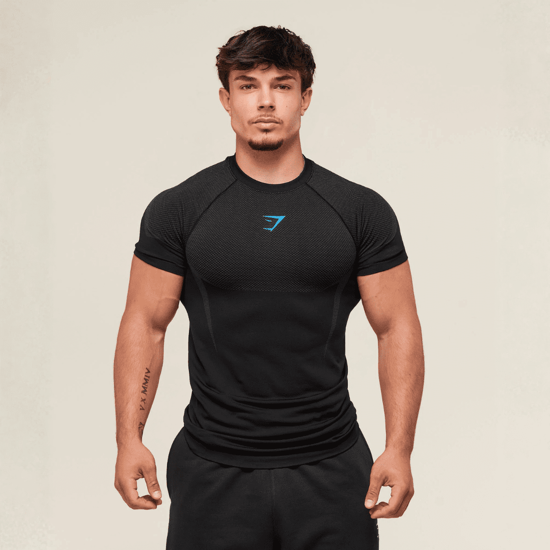 GYMSHARK ONYX 5.0 SEAMLESS T-SHIRT – BLACK/ONYX GREY